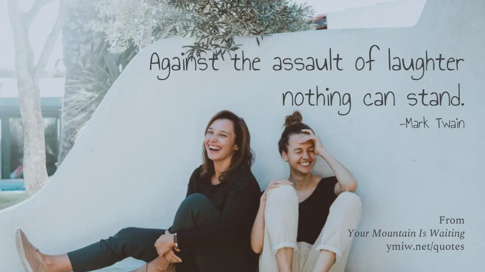 Quote - Laughter Against the assault of laughter nothing can stand.— Mark Twain This quote is one of hundreds from a book called Your Mountain Is Waiting. Sign up to receive a quote like this every morning or purchase the book to get all of them at once. bill nusseyFebruary 26, 2019Comment Facebook0 Twitter LinkedIn0 Reddit Tumblr Pinterest0 0 Likes